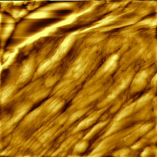 scan1 (7)_1 Published June 20, 2015 at 512 × 512 in Image Gallery ~1 um scan of a gold surface. If you look closely you can see the atomic layers. Constant current, 50 mV, 1 nA.